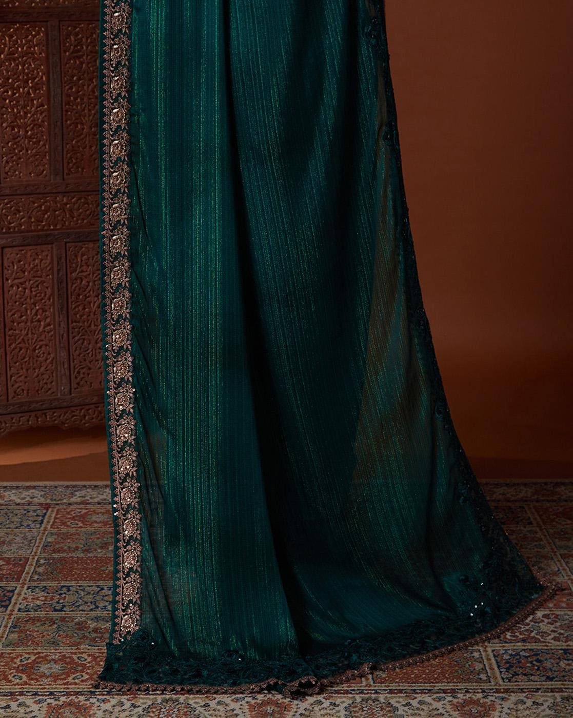 • This georgette saree is meticulously crafted, featuring embellishment and intricate embroidery. Embellished with a sequin-studded border and refined embroidery, it exudes a formal and distinguished charm.