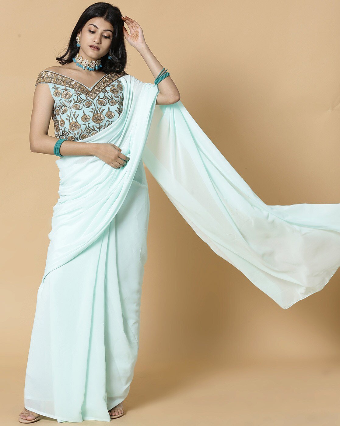 • Saree, Pre-stitched Blouse