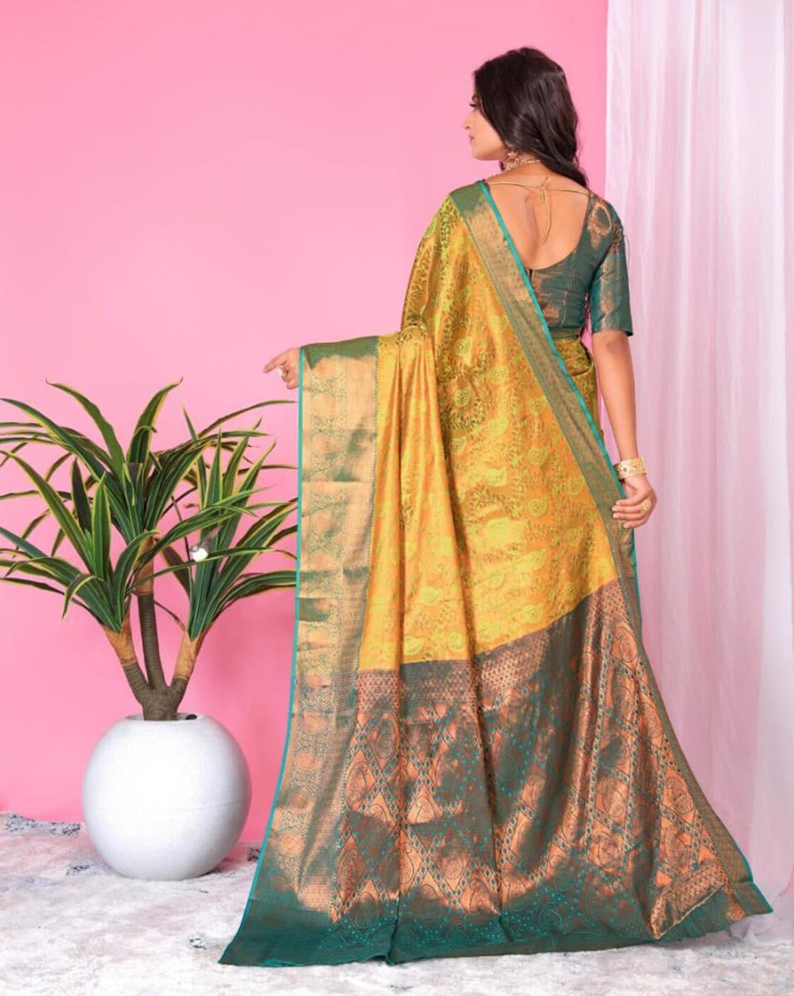 • The last image gives a detailed look of the blouse piece that comes with this saree (The blouse in the images is only for styling purpose)